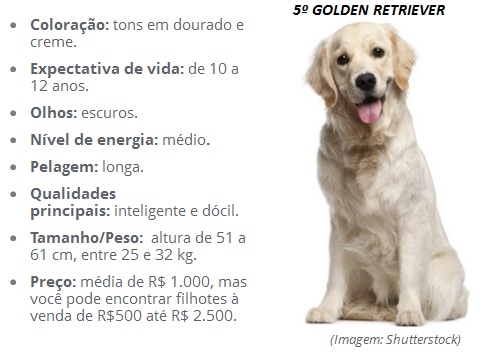 O Golden Retriever é, sem dúvida, uma das raças mais amadas do mundo e não só do Brasil! Simpático, é muito dócil, adora crianças e está entre as principais raças de cão-guia, não sendo somente popular, mas também muito útil para ajudar as pessoas que necessitam de auxílio.