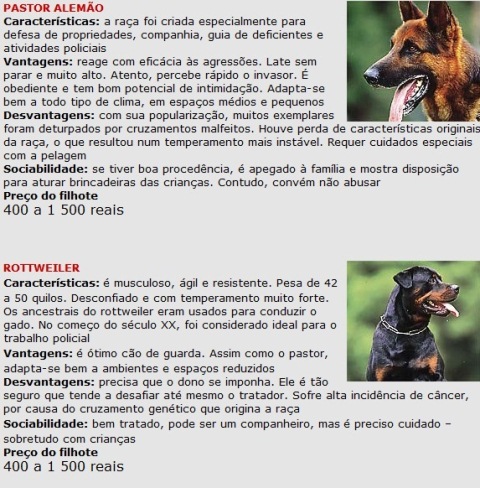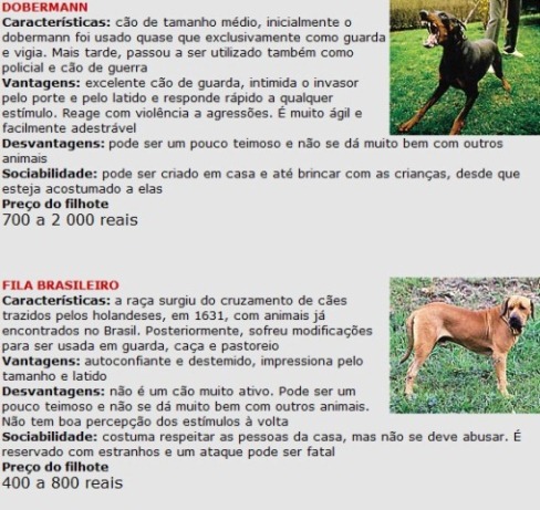 25/09/2013 16:13Segundo a revista " VEJA " da editora Abril da edição 1- de 13 de Junho de 2001 relata do melhor cão de guarda e a escolha da raça adequada, que pode lhe oferecer um poderoso aliado na segurança da sua casa.