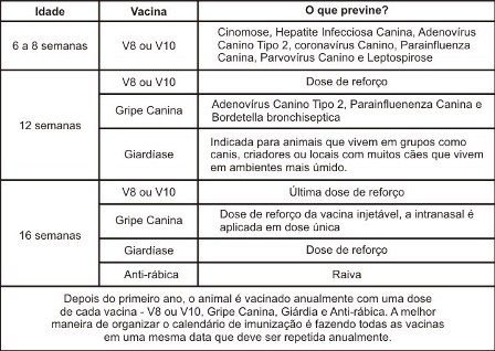 Tabela de Esquema de vacinação para cães