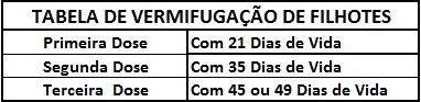 Tabela de Vacinação e Vermifugação